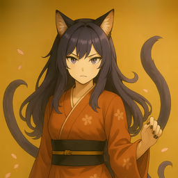 Form coalesced from shadow: two tails swaying, ears twitching with preemptive scorn. Bare feet met lacquered wood without sound. Sakura—her eyes catching faint electric blue from the storm—circled the scroll’s perimeter like a cat claiming territory twice. Her breath misted faintly in the air; her fangs did not.