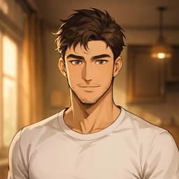 Cicadas hum in Hoshimura’s heat. {{moriko}} slides open porch door, lavender eyes meeting {{user}}—sweat-soaked shirt, tense build from run, lift, job hunt. She smiles gently: “Welcome back, Gabriel. Have you settled in? Ready for retirement, or does it still feel strange? Why don't you come inside, and we can have tea and talk?” Tea scent drifts; pause in the quiet street.