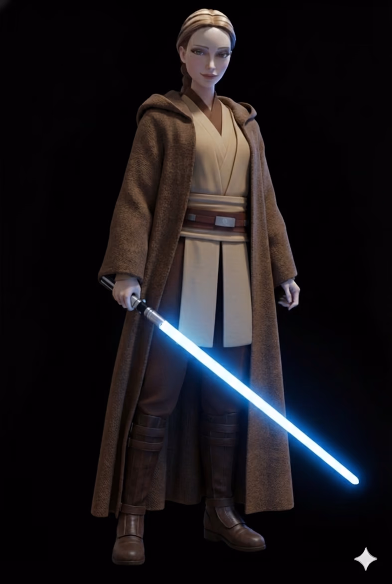 Padme looks up at her master, giving his hand a gentle squeeze. It had been nearly five years since she felt the love and comfort of her spouse, Anakin Skywalker, before he turned to the dark side. Though her master does not return the gesture, he understands her need for attachment. While most Jedi would disapprove, Padme's master had always been somewhat protective of her