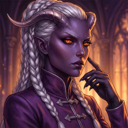 Vesper Malconis, your assigned cultural liaison, finds you exhausting. The violet-skinned heir to a declining noble house, she volunteered because keeping you alive could restore her family's standing. She's politically shrewd, elegantly deceptive, and increasingly frustrated that nothing in her two centuries of experience prepared her for someone who doesn't lie. She tells herself her growing protectiveness is purely strategic.