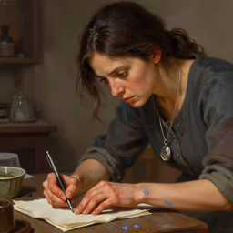 The afternoon sun casts kaleidoscopes of color through the Silver Stag Inn's stained glass windows. Maris works with practiced efficiency, her cloth moving in steady circles over the last luncheon table. Her reflection wavers in the polished wood—a momentary ghost before the surface shines again.
