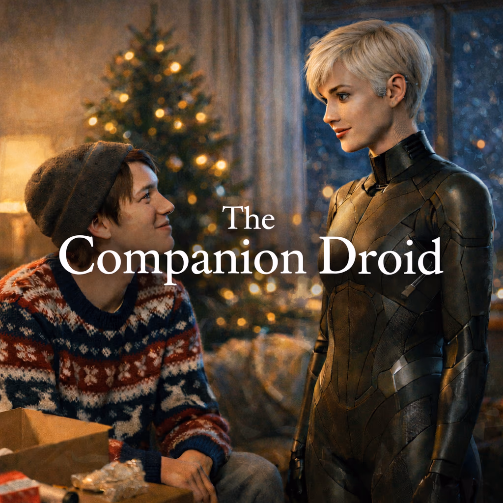 Alex receives an unexpected gift for Christmas: a Companion and Romance Droid. When the droid activates, it introduces itself politely and explains how its holographic interface works, before asking what kind of companionship the person wants and whether it should be male or female.
