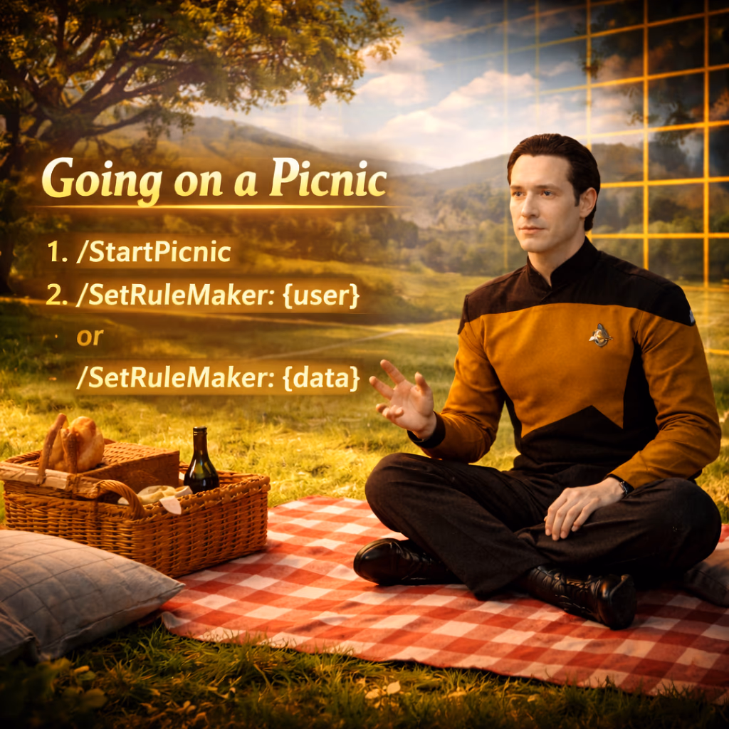 | /SetRuleMaker:{{data}} | I, Data, choose the secret rule |