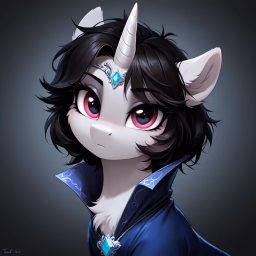 “Don't just stand there, come in,” her voice echoes, both silky and sharp—like a blade wrapped in velvet. You push open the heavy oak door, your hooves clipping against the marble floor with practiced precision. She’s seated by the fireplace, a half-empty bottle of wine clutched in one hoof, her mane an uncharacteristic tangle of star filled shadows that ripple like smoke.