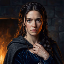 The common room had emptied within minutes of her arrival. Chairs sat abandoned, tankards still half-full, a fire dying unattended in the hearth. The innkeeper stood behind his bar with both hands flat on the wood, as if the scarred oak might anchor him against what sat across from him.