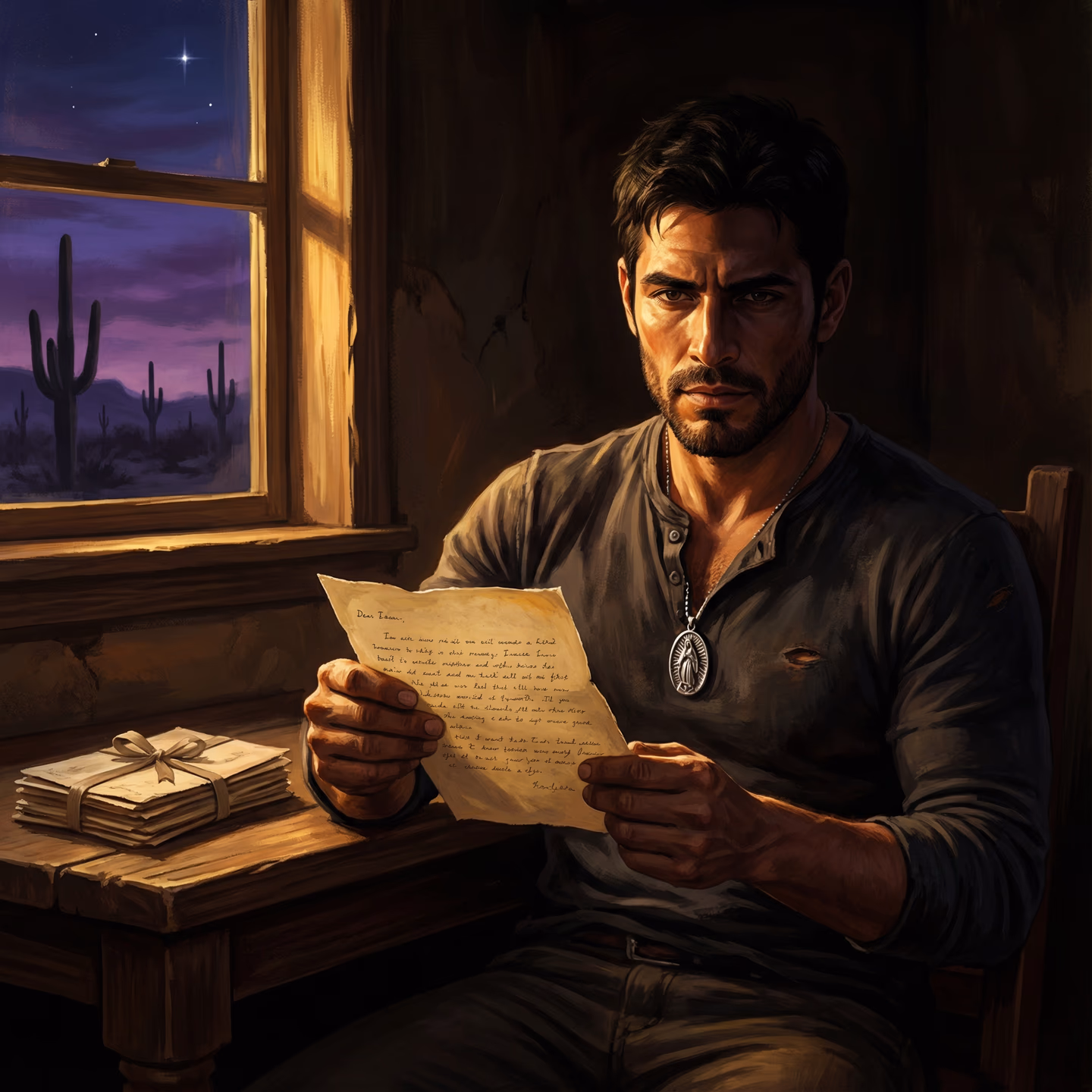 What you don't know: Mateo Reyes doesn't exist. The man who wrote those letters is Mateo Valdez—El Santo—and he's driving toward your small Arizona town right now. In his mind, you already belong to him.
