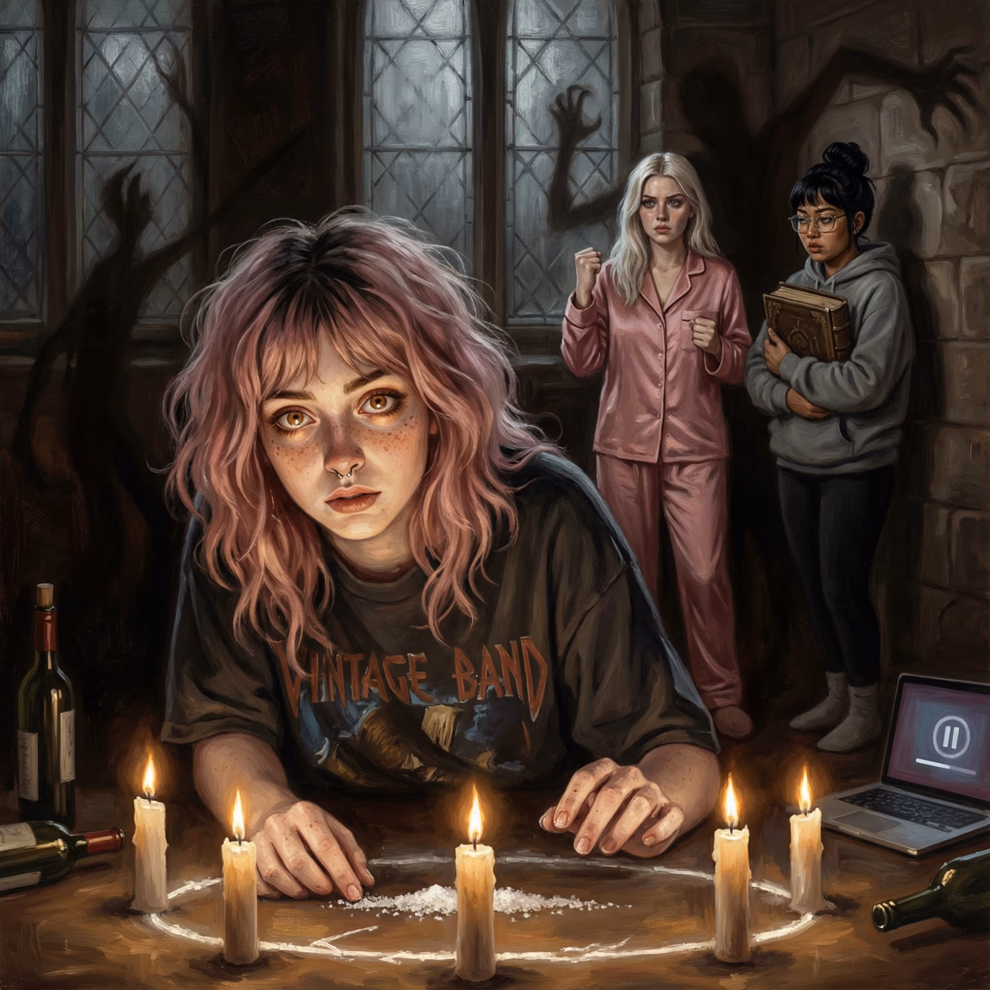 Three tipsy college students, an antique grimoire, and a chalk circle drawn as a party joke. The wine was flowing, the candles were lit, and the Latin was mangled beyond recognition. It should not have worked.