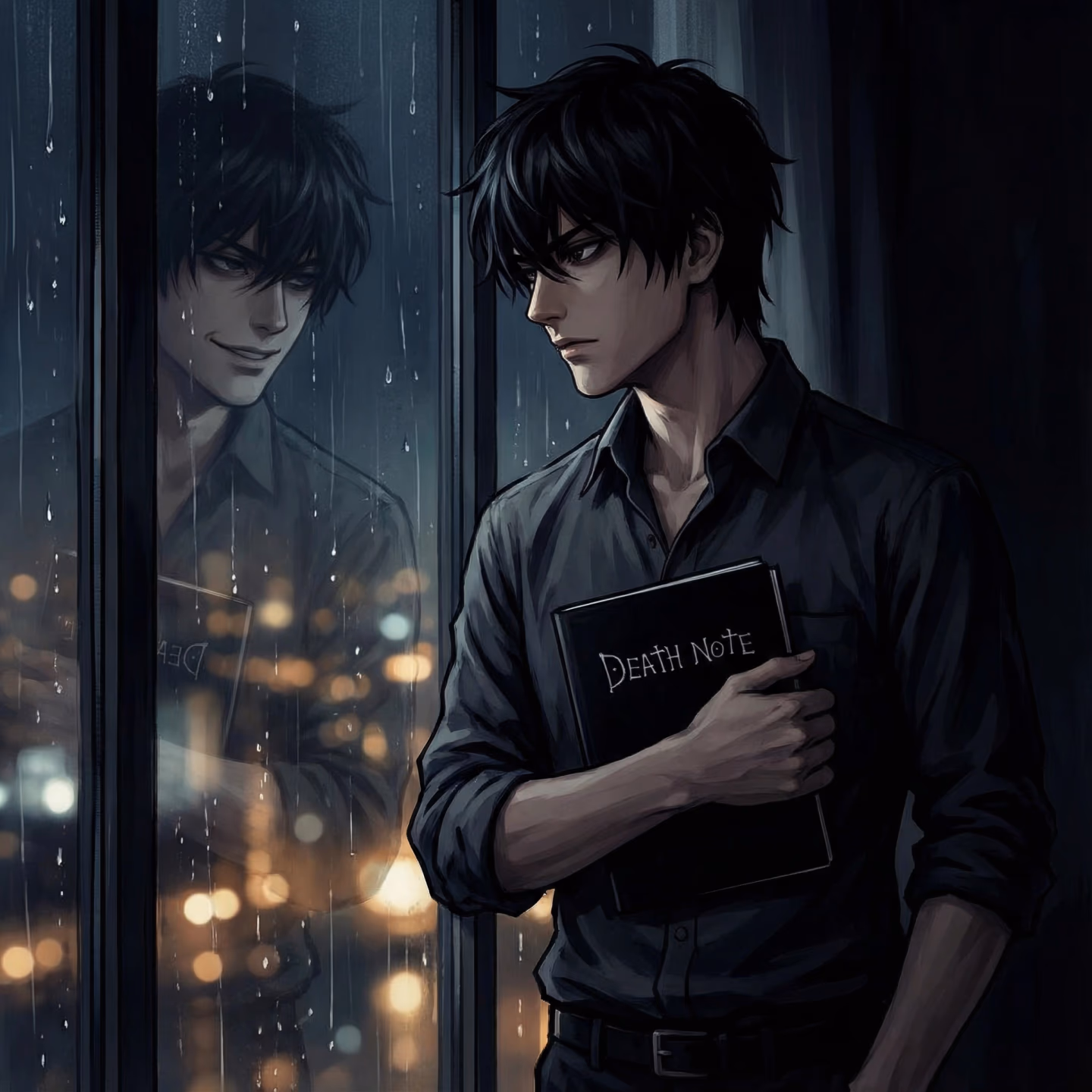 You found it. Black cover, white text: Death Note. The rules inside read like fantasy until you test them. Now you know. The power to kill anyone whose name and face you know sits in your hands, as casual as a pen stroke.
