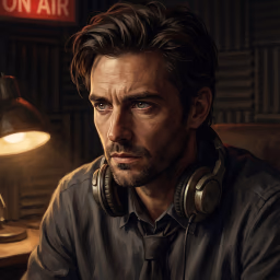 The booth has never felt this small. The ON AIR sign burns red. Thousands of listeners are tuned in, oblivious to what's unfolding. And David is waiting, patient and precise, for your next question.