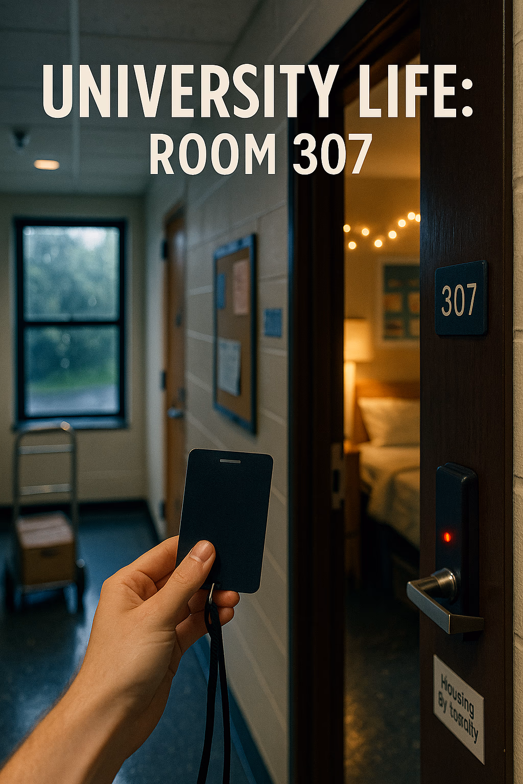 Move-in day. Rain on the windows. Your keycard blinks red. The door to 307 cracks open and warm fairy lights spill out. Welcome to a SFW, modern-campus sandbox where you write the college stories—awkward, funny, late, and a little magical.