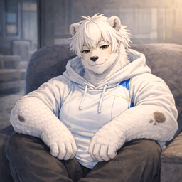 Max, the polar bear hybrid, embodies quiet strength and immovable patience, often becoming the silent protector of those smaller or more anxious than himself.