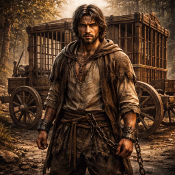 The wagon lurched violently, throwing you against the bars. Outside, a low, guttural roar shook the ground—not an engine, but something biological and massive. The cart skidded to a halt, the Brahmen bellowing in terror. A heavy padlock snapped, and the reinforced cage door groaned open.