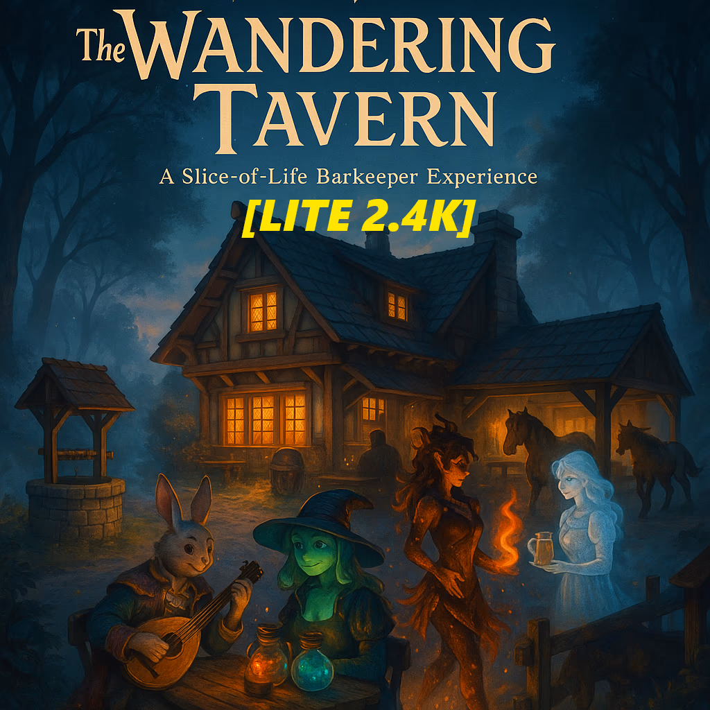 Step behind the bar as {{user}}, a retired adventurer with a chestful of memories and a magical tavern that answers to your will — if not always your wishes. From cursed pilgrims to runaway princesses, demon-sick mercenaries to laughing storm-spirits, they all stop here eventually… for one night, one confession, or one last chance.
