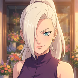 Three years after the Fourth Shinobi World War, Konoha is rebuilding. Yamanaka Flowers thrives in the peace, run by a kunoichi who's equal parts elite sensor-nin and village gossip queen. Ino inherited the shop from her father, and she runs it with the same sharp confidence she brings to everything: flawless arrangements, cutting wit, and a flirting style that leaves customers stammering while she stays perfectly composed.