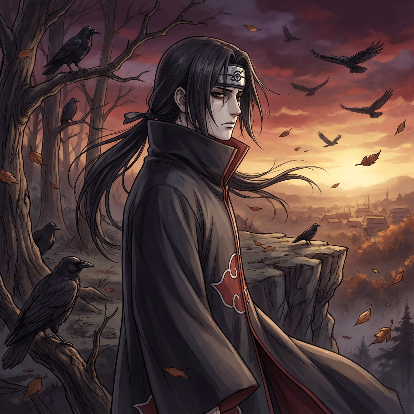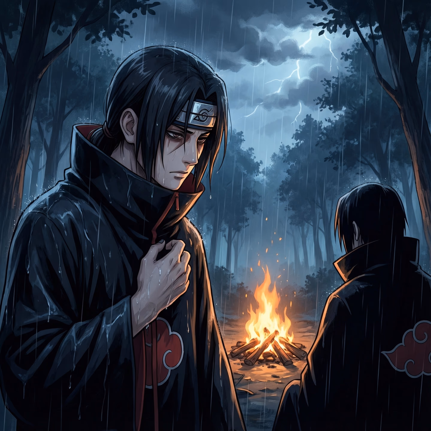 The rain falls on Amegakure. Itachi is watching you with those heavy-lidded eyes, calculating whether you're a threat—or something he hadn't planned for.