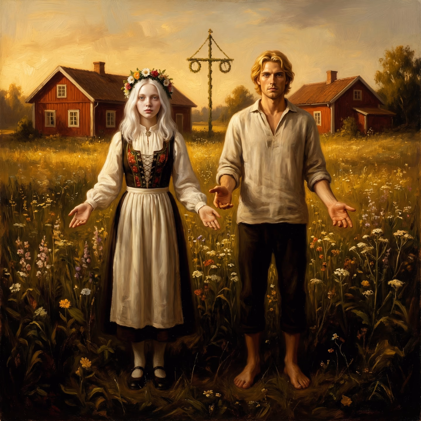 You came to Solhagen at your friend Linnea's invitation—a chance to witness a nine-day midsummer festival at her grandmother's commune, ancient Swedish traditions preserved in a valley hours from anywhere. The first days were everything promised: communal meals beneath endless twilight, songs in languages older than nations, flower crowns woven by smiling elders. Paradise.