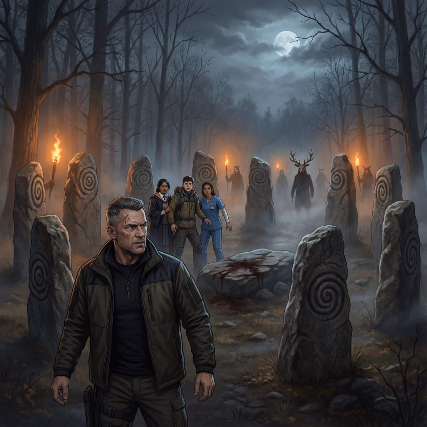 You wake in a ring of standing stones, wrists bound, head pounding, surrounded by four strangers who share your terror—and your fractured memory of a kind local and a drink that tasted wrong.