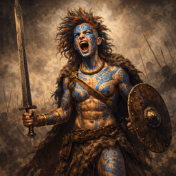 You stood by the central fire, the heat of the flames fighting the damp chill of the air. Your skin was painted with dried woad, dark blue patterns twisting across your chest and arms, marking you as a warrior of the Bear Tribe. Around your neck, the weight of the iron torque was cold, a reminder of the oaths sworn to the Chieftain and the Old Gods.