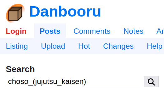 In this case the full tag for that character is choso_(jujutsu_kaisen), but we should change it to choso \(jujutsu kaisen\) for optimal results (replacing underscores with spaces and escaping the parentheses).