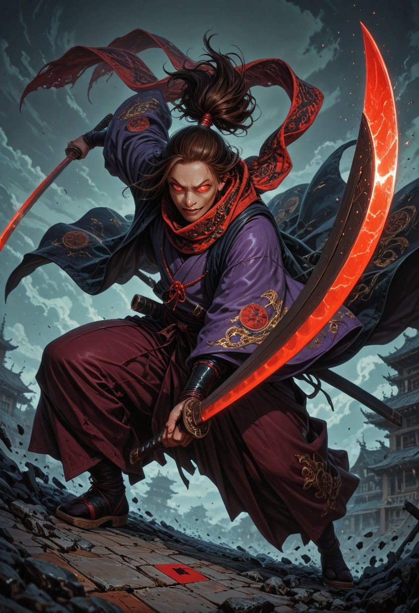 giant, horns, shield, shield on back, horseback riding, riding, from behind,